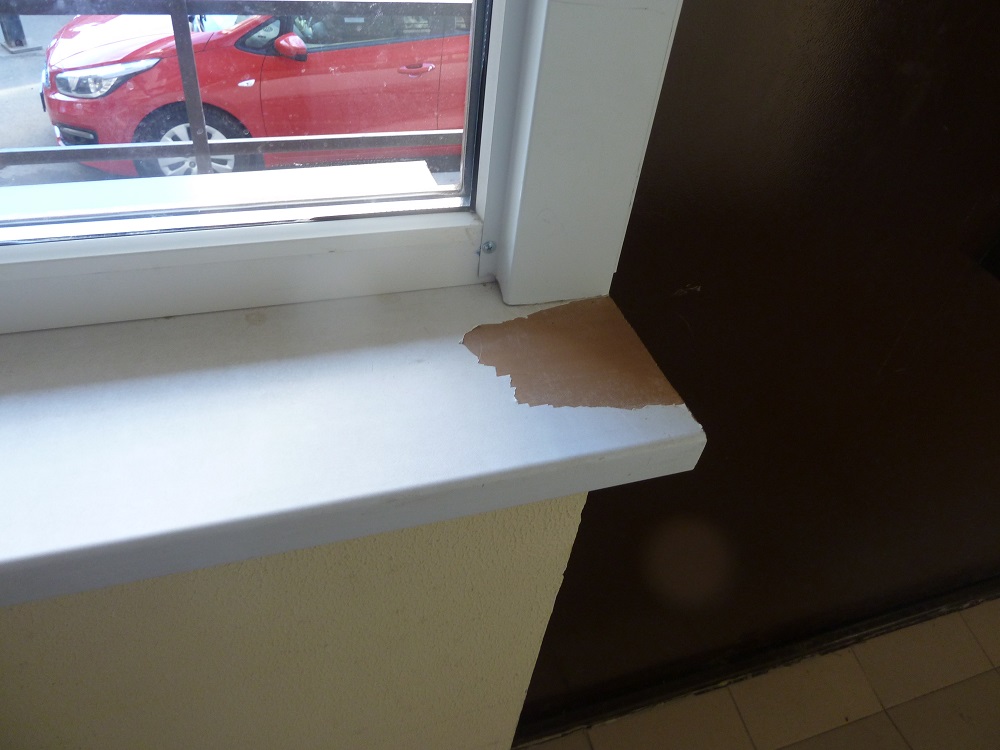 2017 год, корпус 1, 3-й подъезд - написана коллективная претензия по недостаткам в подъезде, УК отчиталась о выполнении. Но не прошло и месяца, как потолок в тамбуре опять развалился. Контроль за подрядчиками был? Или главное скорее написать красивый ответ.